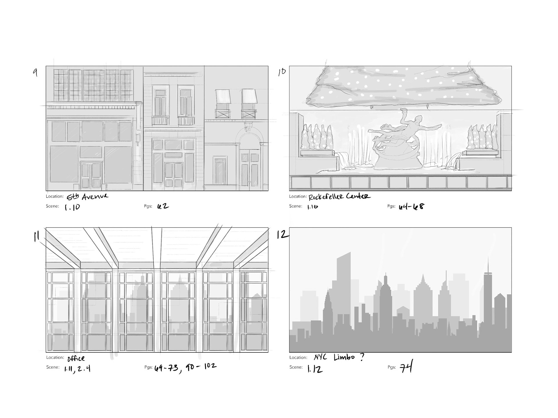The concept of this production was to highlight the modern storybook quality of the script. Each projection was hand-drawn in a modern storybook aesthetic.